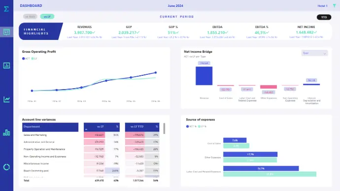 Obtén la cuenta de resultados en formato USALI, aplicable a países de todo el mundo. Ingresos, gastos, comparativas y previsiones.